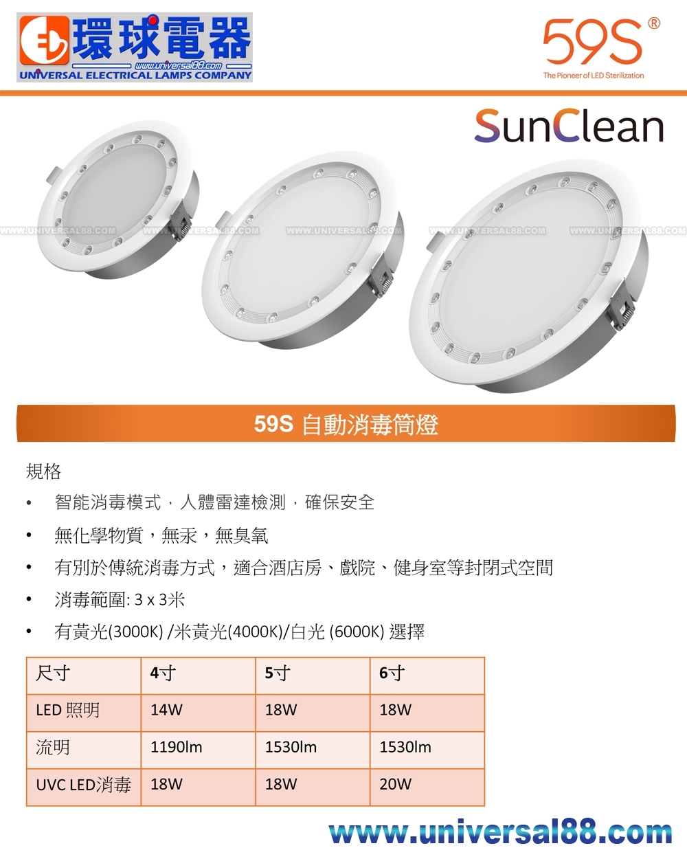 SunClean 59S-18W 5" 自動消毒假天花燈