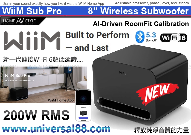 Sub Pro與WiiM串流器、功放與音箱完美配合; 通用兼容,