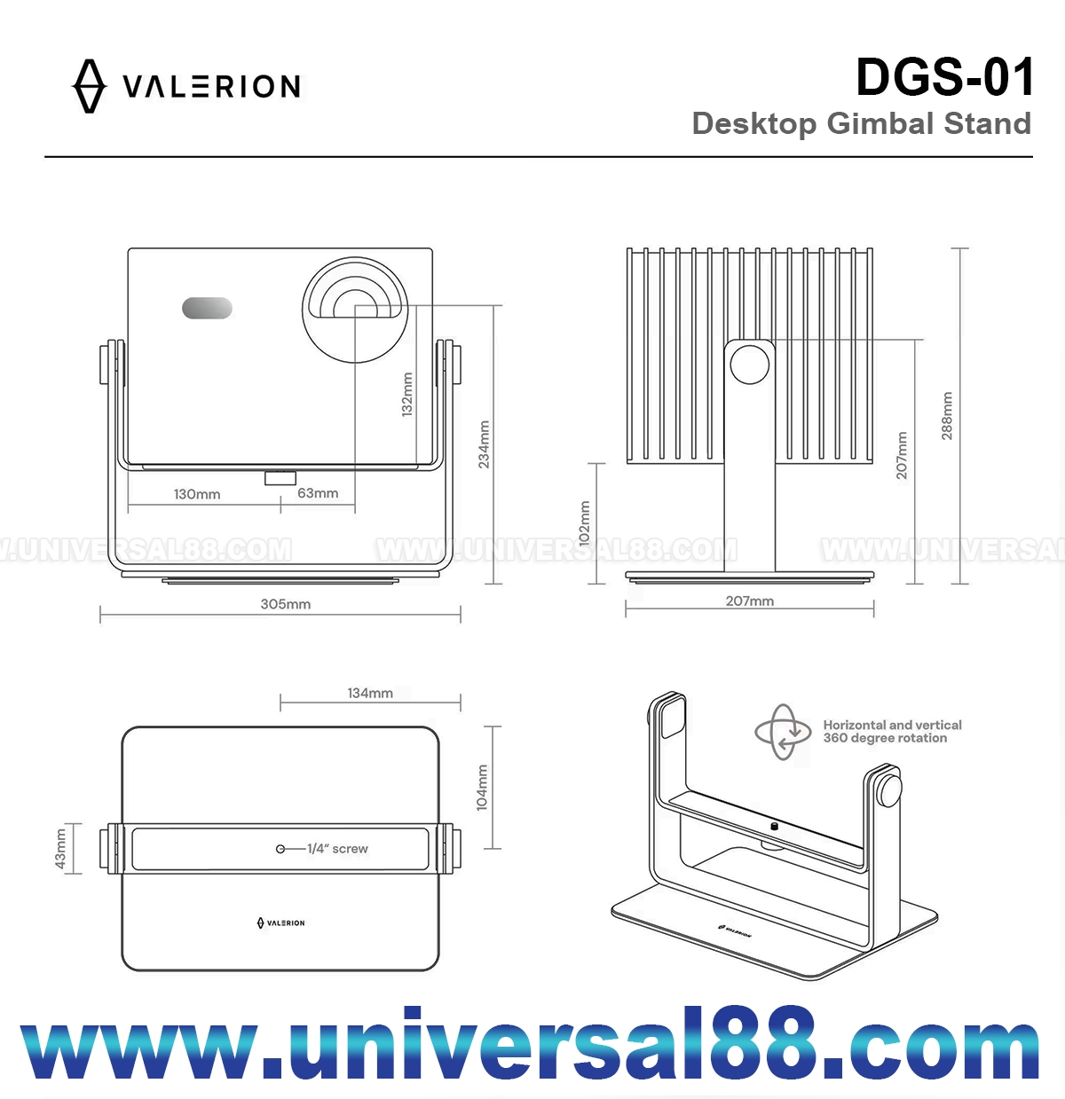 特點: 360°水平和垂直角度調節, 堅固的鋁合金底座