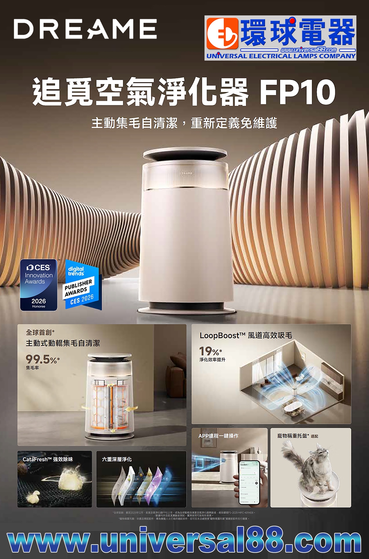 (內置Wi-Fi智能手機即時監察) (採用高級別HEPA H14過濾網) (內置UVC除病毒率達99.98%) (甲醛去除98.3%潔淨呼吸空間) (內置LED環境氣氛燈提供色彩) (首創動輥集毛自潔CataFresh) 免息分期: 每月HKD $333 (共12個月) LASTUPDATE: 26-03-2026