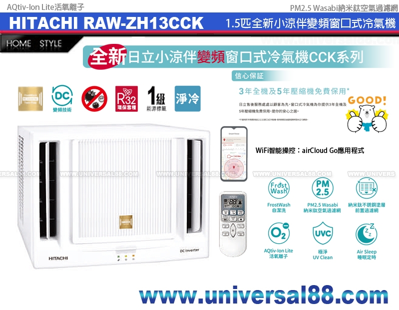 HITACHI RAWZH13CCK 1.5匹變頻窗口冷氣機(遙控)