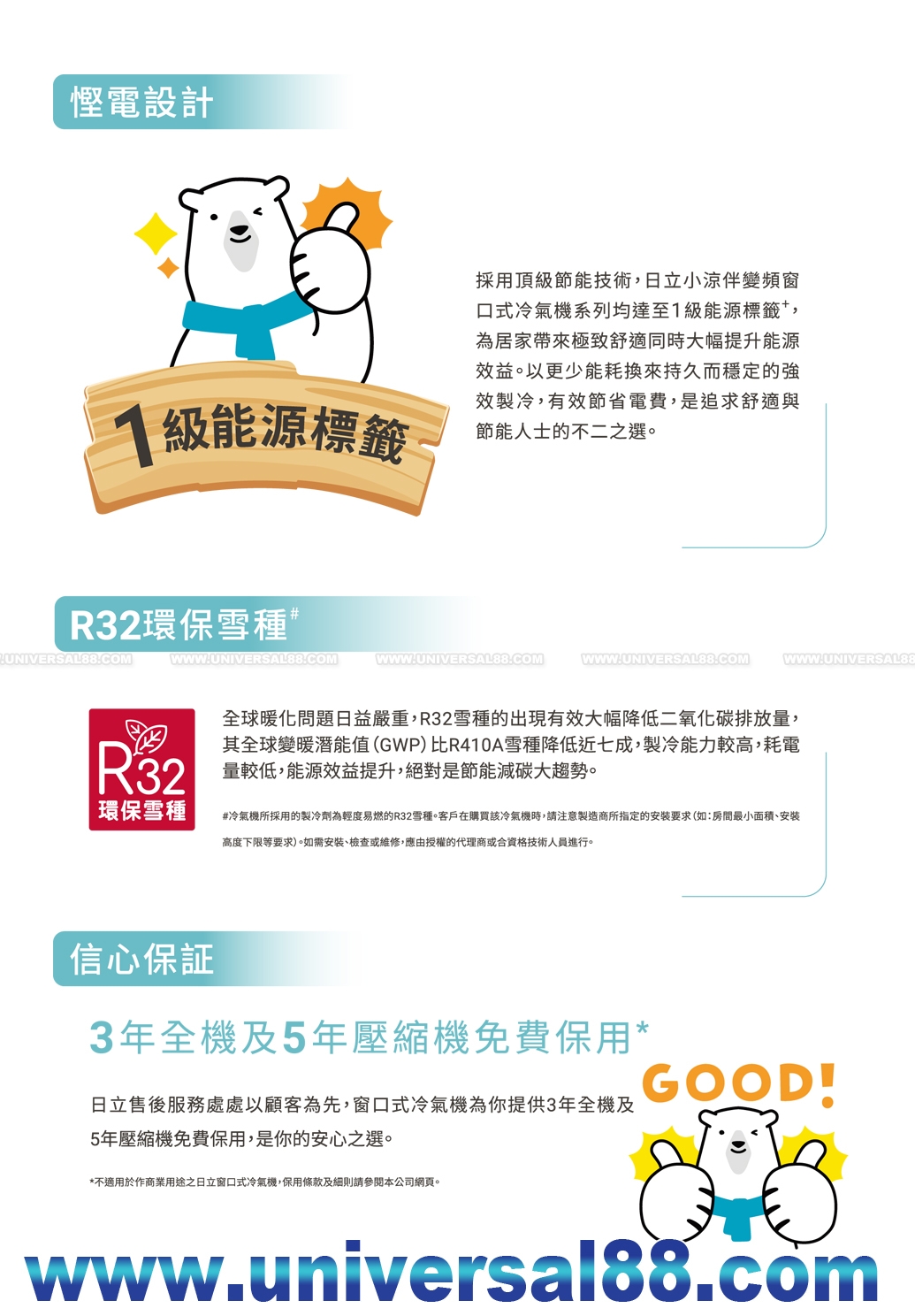 HITACHI RAWZH13CCK 1.5匹變頻窗口冷氣機(遙控)