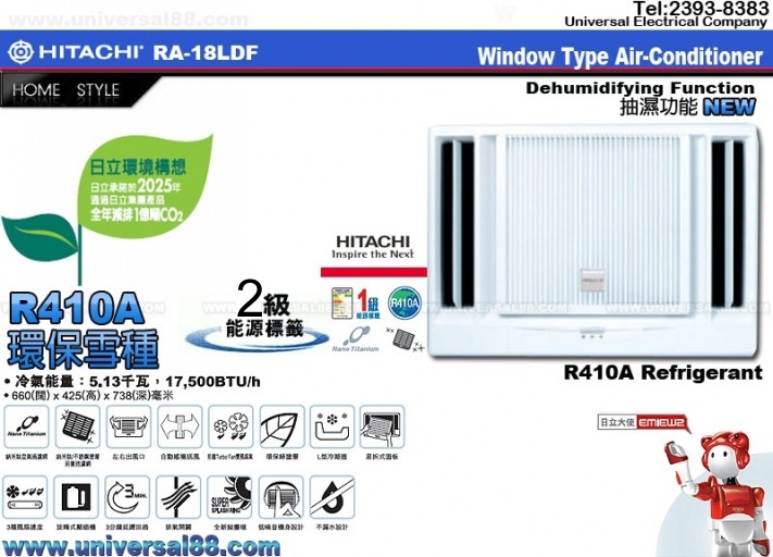 全新HITACHI RA-18LDF"日立小涼伴環保系列"