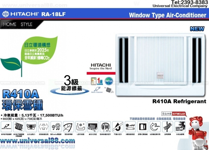 全新HITACHI RA-18LF"日立小涼伴環保系列"