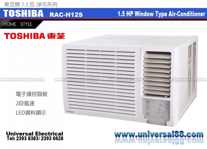 壓縮機保用5年 全新TOSHIBA 東芝牌 RAC-H12S 1.5 匹 淨冷系列窗口式冷氣機