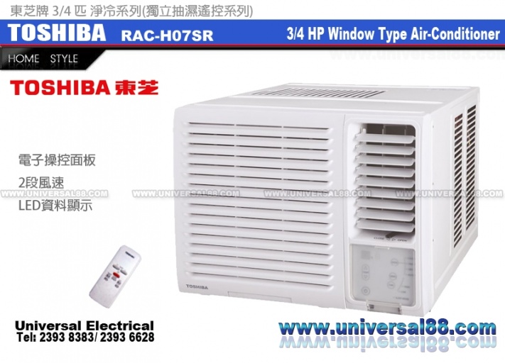 全新TOSHIBA 東芝牌 RAC-H07SR 3/4 匹 獨立抽濕遙控系列窗口式冷氣機 1級能源標籤