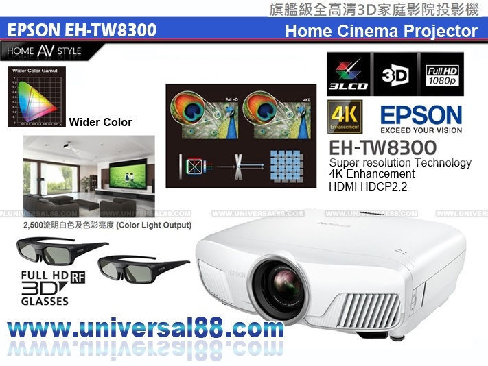 採用0.74 吋D9 C² Fine 3LCD全高清投影面板的EH-TW8300,