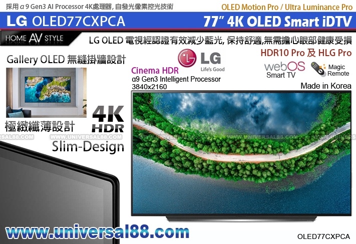 特點: 自發光像素控光, 纖薄機身, 2.2CH音響系統, Dolby Vision IQ, Dolby Atmos