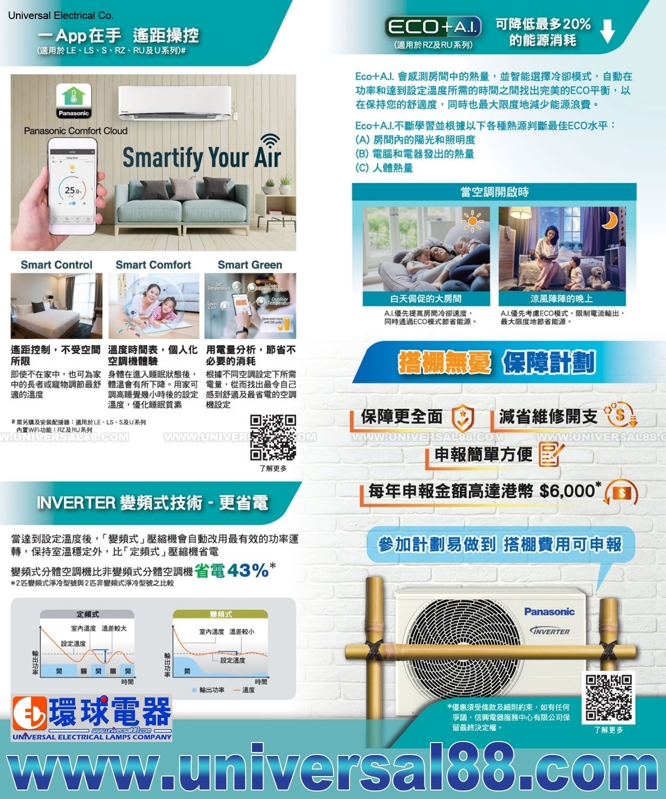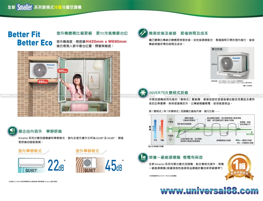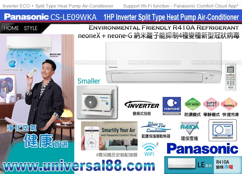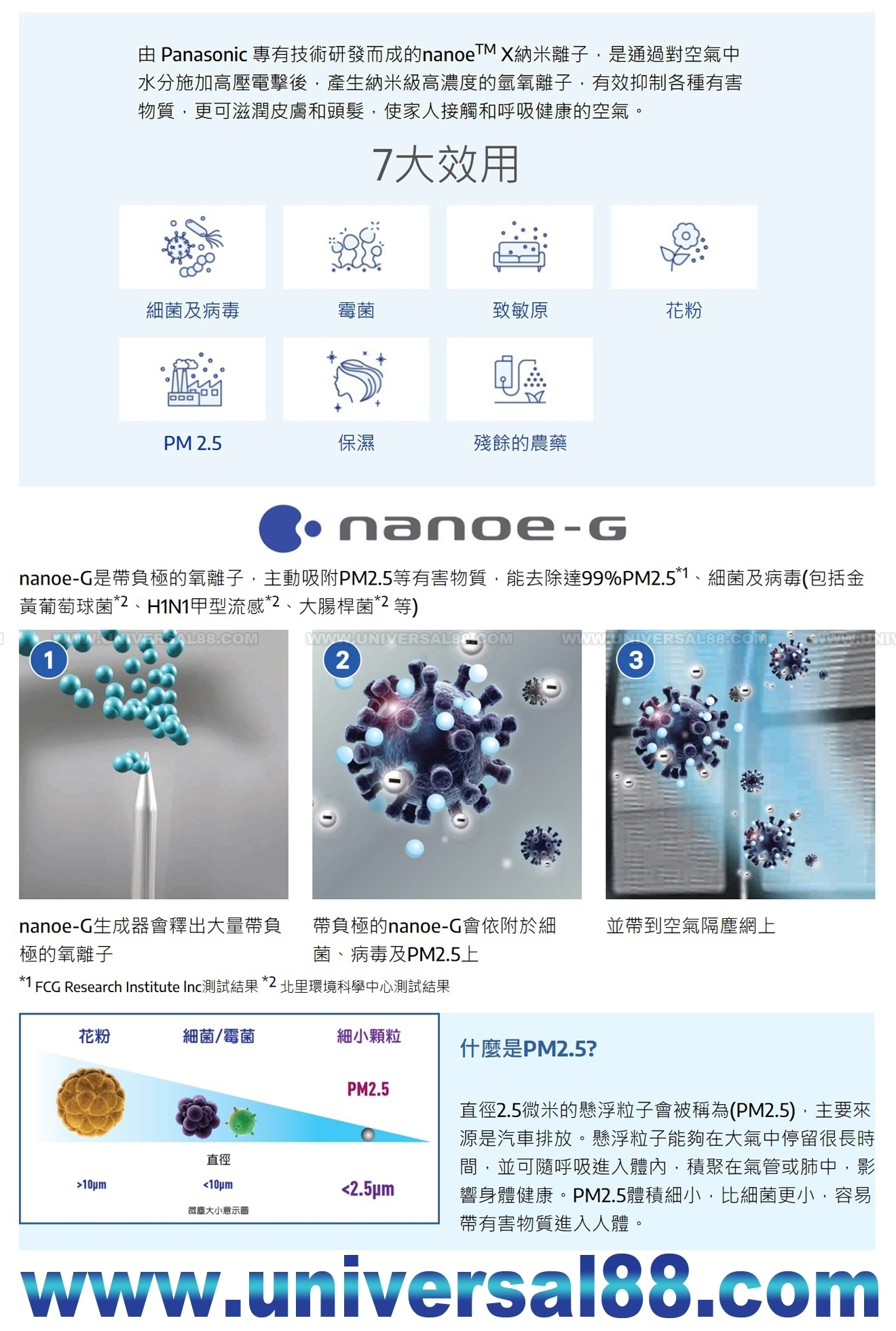 特點: 冷暖變頻, 散熱高只有度420mm, nanoe-G空氣淨化系統