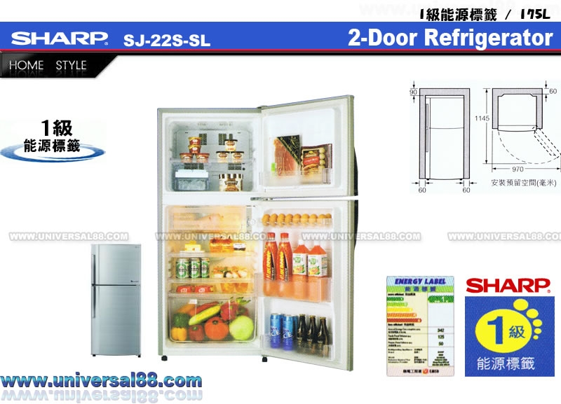 SHARP SJ-22S-SL 聲寶牌 雙門環保雪櫃(175L)