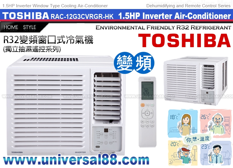 RAC-12G3CVRGR-HK(遙控) 東芝 1.5匹R32變頻窗口冷氣
