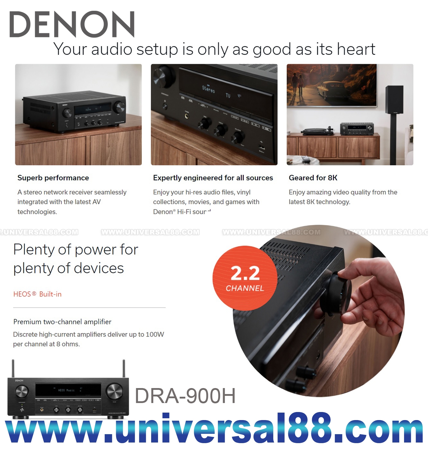 擴音機每聲道功率175W, 具有沉浸式Denon音質