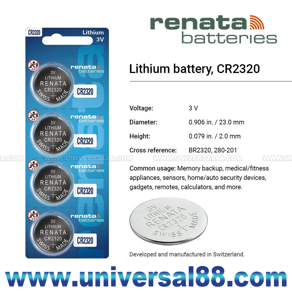 特點: 鈕扣式電池, 優質電池產品, 瑞士製造(Made in Swiss) 瑞士RENATA CR2320 鈕釦鋰電池 Renata Lithium Button Battery Cell Button Battery Non-Rechargeable 電壓: 3V 瑞士製造 (Made in Switzerland)