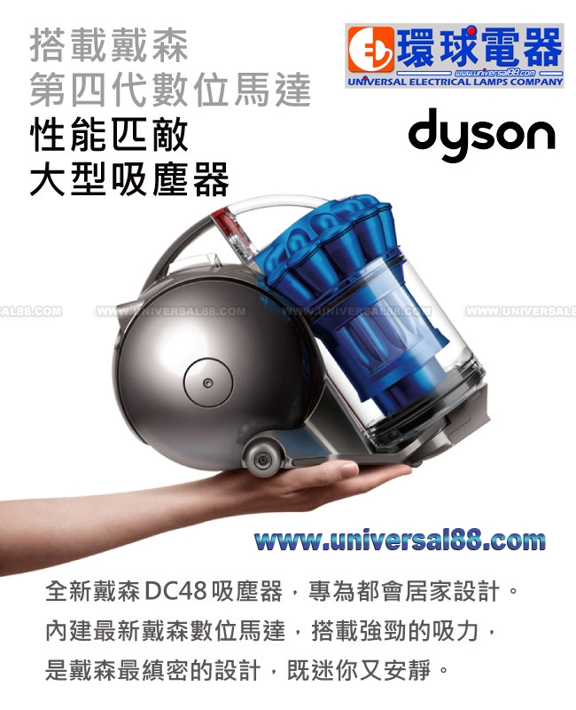 特點: Dyson數碼摩打V4 , 防靜電碳纖維吸頭, 球型技術, 輕鬆閃避傢俱及順滑地移動 原廠五年保用 Dyson DC48 Turbinehead 高效能真空吸塵機 (符合人體工學) (Dyson DC48 vacuum cleaner with Carbon Fibre Bristles) Dyson最小型, 最寧靜的吸塵機, 以Dyson第四代V4數碼摩打驅動 DC48 以輕巧及寧靜為設計方向, 全賴嶄新設計的V4數碼摩打, 令DC48體積得以大幅減少30%, 發出的音量更可減低30% (比較DC36), 即使機身變得迷你, 吸力卻依然保持強勁, 務求達至「體積細小, 表現更佳」的目標 DC48是唯一以Dyson數碼摩打驅動的圓筒式吸塵機 效率高, 動力大的摩打, 令Dyson這部最小型的 Dyson Ball球型吸麈機表現猶如大型吸塵機 它將操作音量降低及改善整體吸塵機所發出的聲音 Dyson第四代數碼摩, 轉數高, 動力大, 直徑僅85毫米, 是世上其中一款最小型的多功能1050W摩打 最新防靜電碳纖維吸頭 地板吸頭經重新設計, 改善清潔功能及隔音效果, 機身亦更輕巧, 簡化後的空氣槽減少噪音, 自緊式裝置保持吸頭操控穩定, 而集塵槽有效防止塵垢跌回地面, 加強清潔效能, 全新設計的碳纖細絲及尼龍絲刷毛, 便於清除硬質地板上的 微塵及地毯上的深層塵埃 隔音技術 隔音是Dyson設計過程的重心, DC48球型吸塵機經過多次改良, 而氣旋組件及地板工具能夠減少噪音並加強隔音效果 英國著名吸塵機品牌Dyson 真空吸塵機 DC48轉彎順暢, 即使空間細小, 亦可靈活操縱, 可旋轉90度的軟管接口位, 讓使用者於房間內輕鬆拖動, 減少碰撞, 提高穩定性 機身實現了可放在A4紙上的小型化設計 輕巧體積僅有歐美DYSON尺寸的1/3, 本體小到可放置於A4的紙上 Root Cyclone technology "強大離心力分離灰塵科技" 空氣圓錐中的流速, 高達1300公里, 相當於音速, 這是殺死塵蹣的原因, 更被塵蹣拉出空氣外至死 特強抽吸力, 吸力, 絕不衰弱! 專利多圓錐氣旋技術 專利球型技術 卸除集塵筒的過程衛生方便, 快捷 獲得英國過敏協會認證, 已獲推薦給過敏人士使用 碳纖維渦輪吸頭配備絲絨防撞墊可保護牆壁和傢具 功率1,050w只能反映出一台吸塵器的耗電量 均使用最強韌的物料製作而成 內置的集塵筒更採用了防暴盾牌的物料 通過耐力測試, 能夠應付由樓梯掉落 不可思議的輕盈靈巧, 讓收納更不佔空間 Dyson多圓錐氣旋科技吸力永不衰弱的秘密 望遠鏡伸(Telescope Wrap) 方便清潔天花板和 地毯上的灰塵及寵物毛髮等.. 防靜電碳纖維吸頭-(Carbon Fibre Bristles) 採用「多圓錐氣旋科技」集纖巧機身及強大吸力於一身 可清洗高效(HEPA)過濾綱 Lifetime Washable filter 抽吸功率: 180airwatt吸力永遠都是180airwatt, 絕不衰弱! 真空吸塵機功率的最佳衡量單位是airwatt(抽吸功率) 獲有英國過敏協會認證, 推薦給過敏患者 完全不需要買濾網跟集塵紙袋 電線長約 5 m 米 (Cord length 5m) 集塵筒 0.51 Liter 公升 電壓: 220v 1,050Watts 尺寸: W252 / H382 / D202 mm 重量: 2.7 kg 顏色: 藍色 (Blue) 附有配件: 防靜電碳纖維吸頭 送$300.- 環球電器現金禮券(Cash Coupon) 優惠期由01/01/2018延期至31/05/2018止