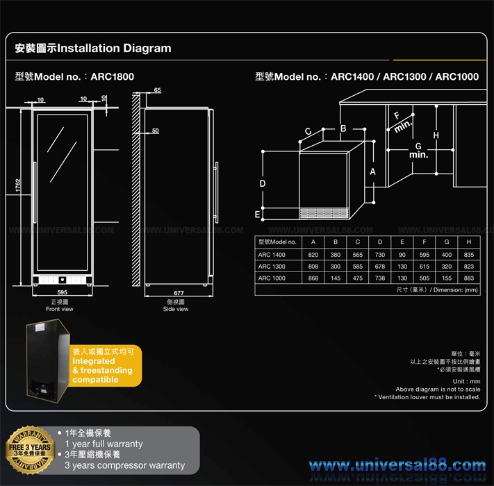 可更改櫃門方向(代理另收取費用HK$100)