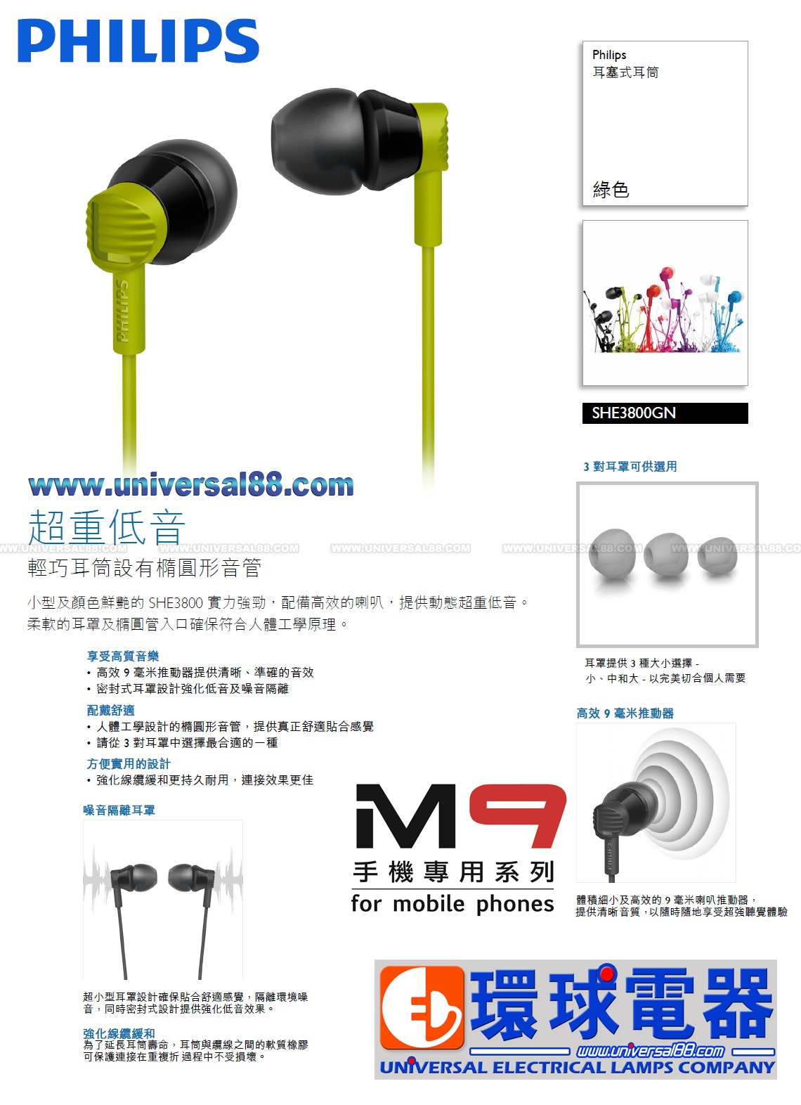 飛利浦 SHE3800入耳式耳筒系列"SHE3800 series"