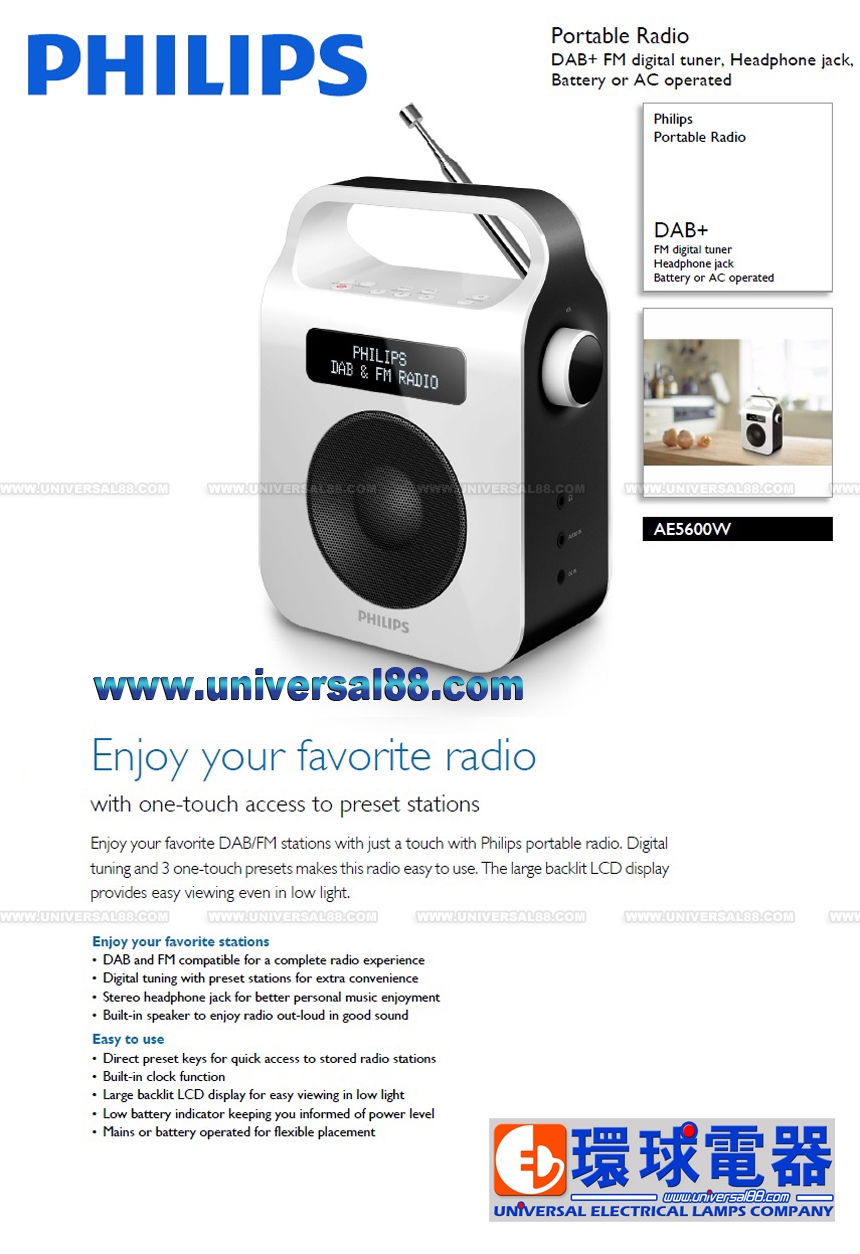 2015年9月全新PHILIPS AE5600W AM/FM DAB+ 數碼收音機