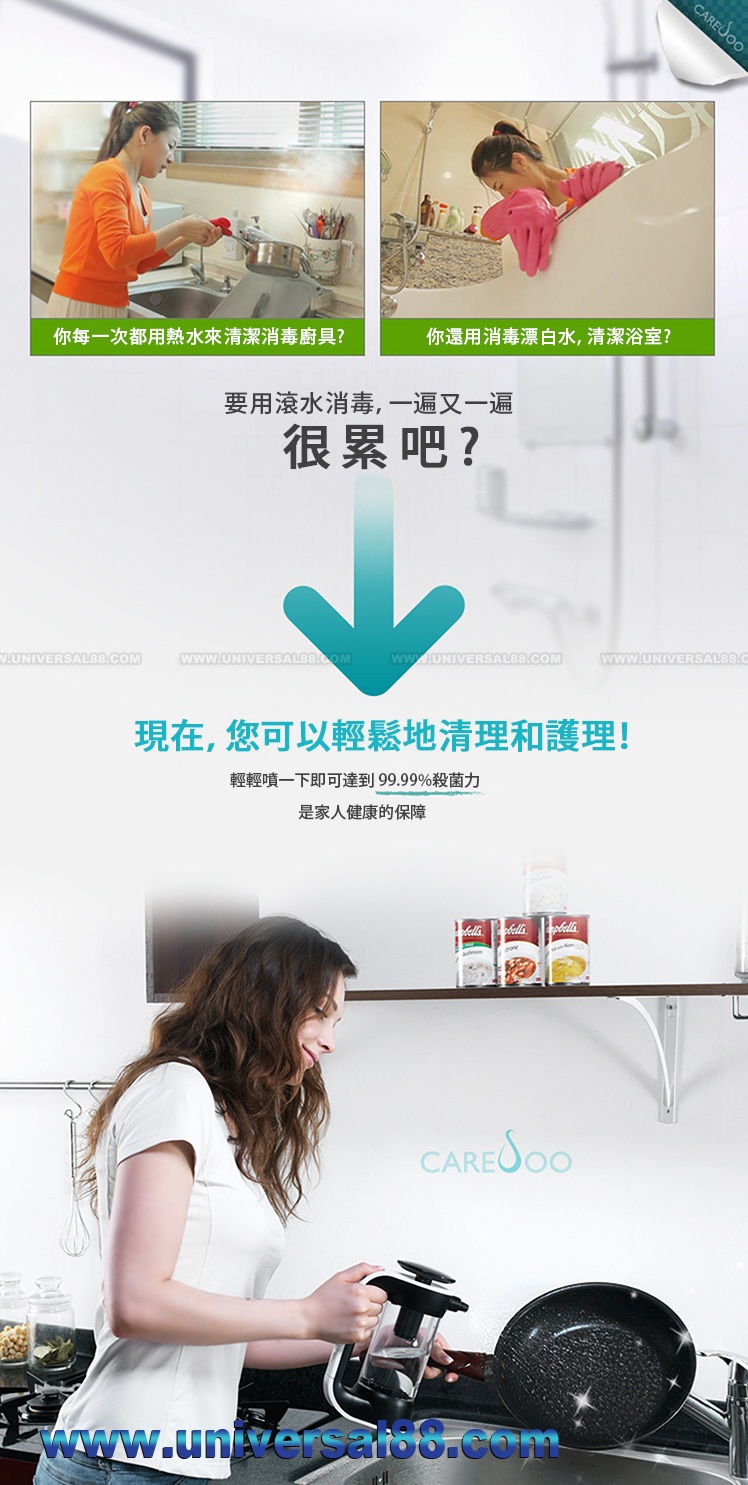 CARESOO噴灑式的殺菌方式更方便且有效殺菌
