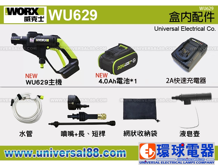 德國威克士 WORX WU629 20V鋰電高壓清洗槍 WORX WU629 High Pressure Water Jet 洗車神器