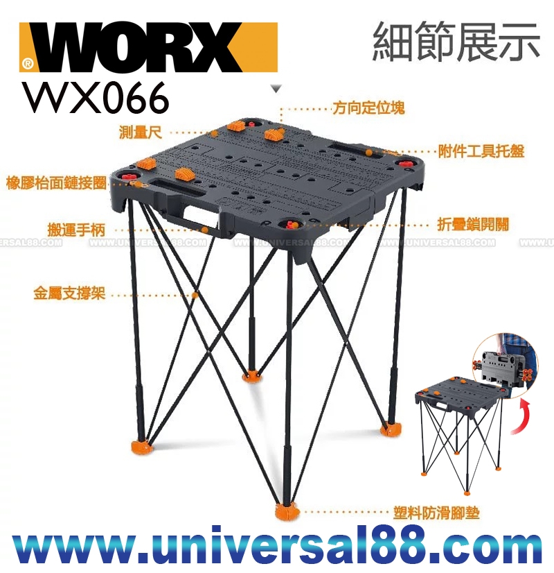 特點: 檯面測量尺, PP材質防滑桌面, 一體式收納, 鋼結構骨架