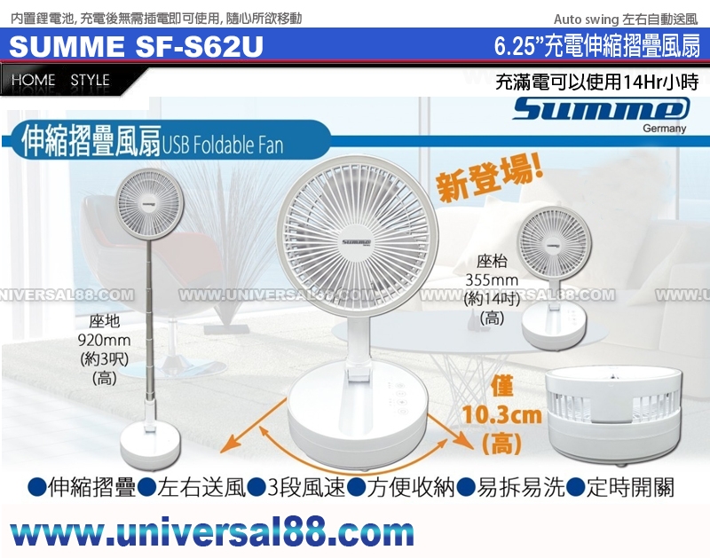 特點: 三段風速, 簡約, 輕巧設計, 充滿電後可以使用達14小時