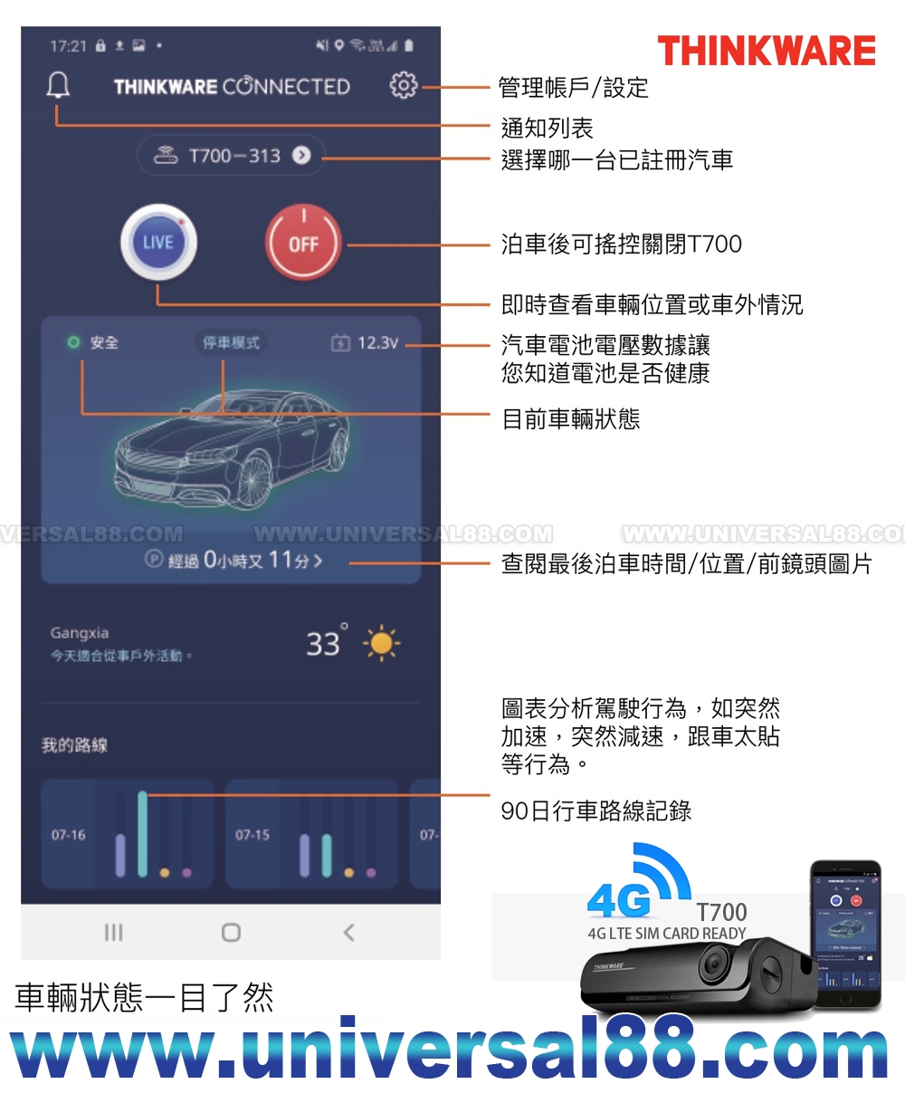 到手機保存影片, 行駛時嚴重撞擊將自動上傳至雲端
