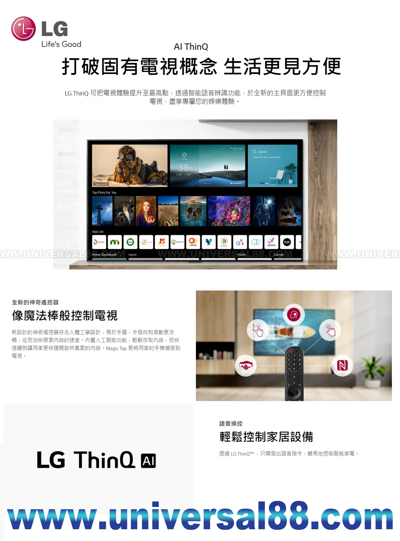 (USB電視錄影功能, HDR Pro) (支援AirPlay2 串流無線播放) (採用4K Quad Core處理器) (支援 FILMMAKER MODE) (採用Direct 直下式背光技術) 額外加送LG原廠保用3個月 送4K HDMI Cable Ver2.0 分期付款 : 每月HKD $332 (共24個月) LASTUPDATE: 31-10-2022
