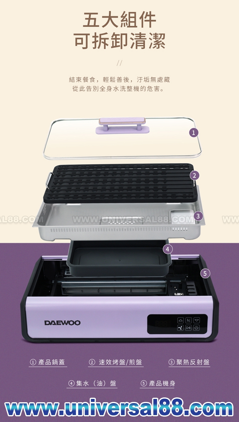 主機五大部件均可拆卸, 烤盤的不粘鍋塗層