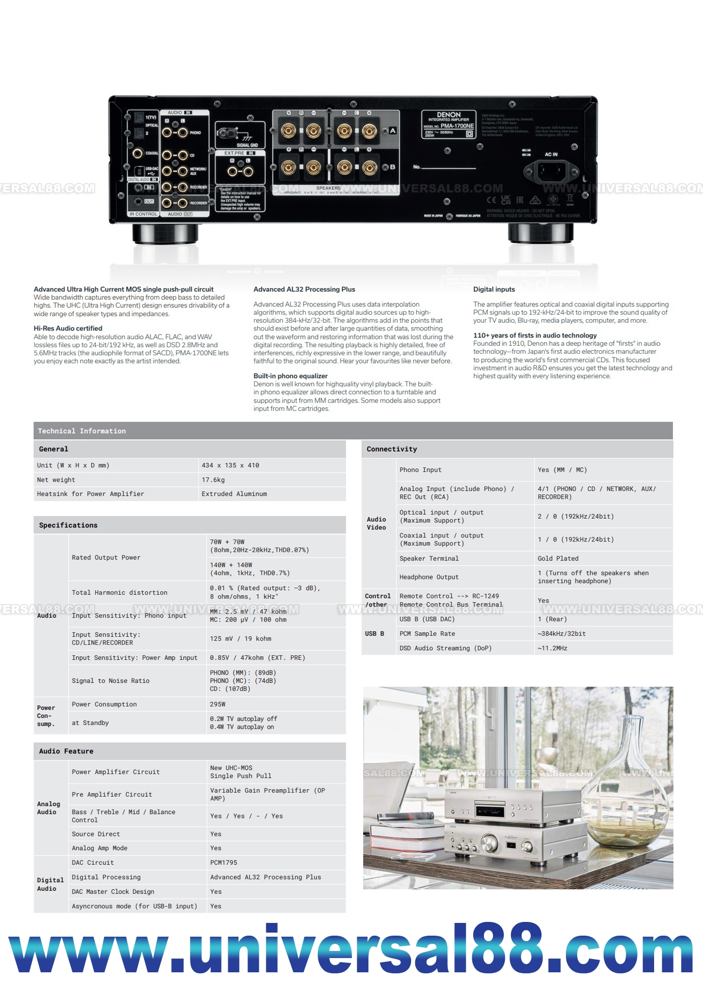 PMA-1700NE provides USB-DAC function that