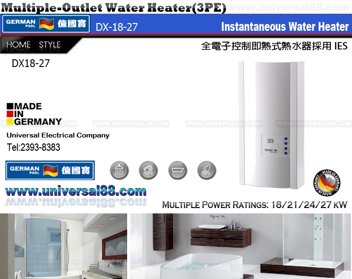 特點:全電子控制即熱式熱水器採用 IES® 明線加熱線加熱系統