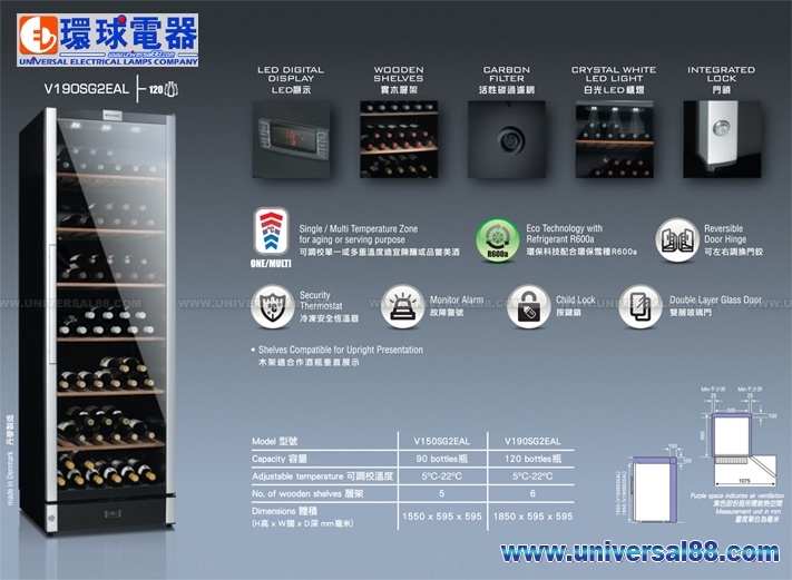 特點: 自動照明燈,雙層玻璃設計, 白色LED照明, LED顯示現有櫃內溫度