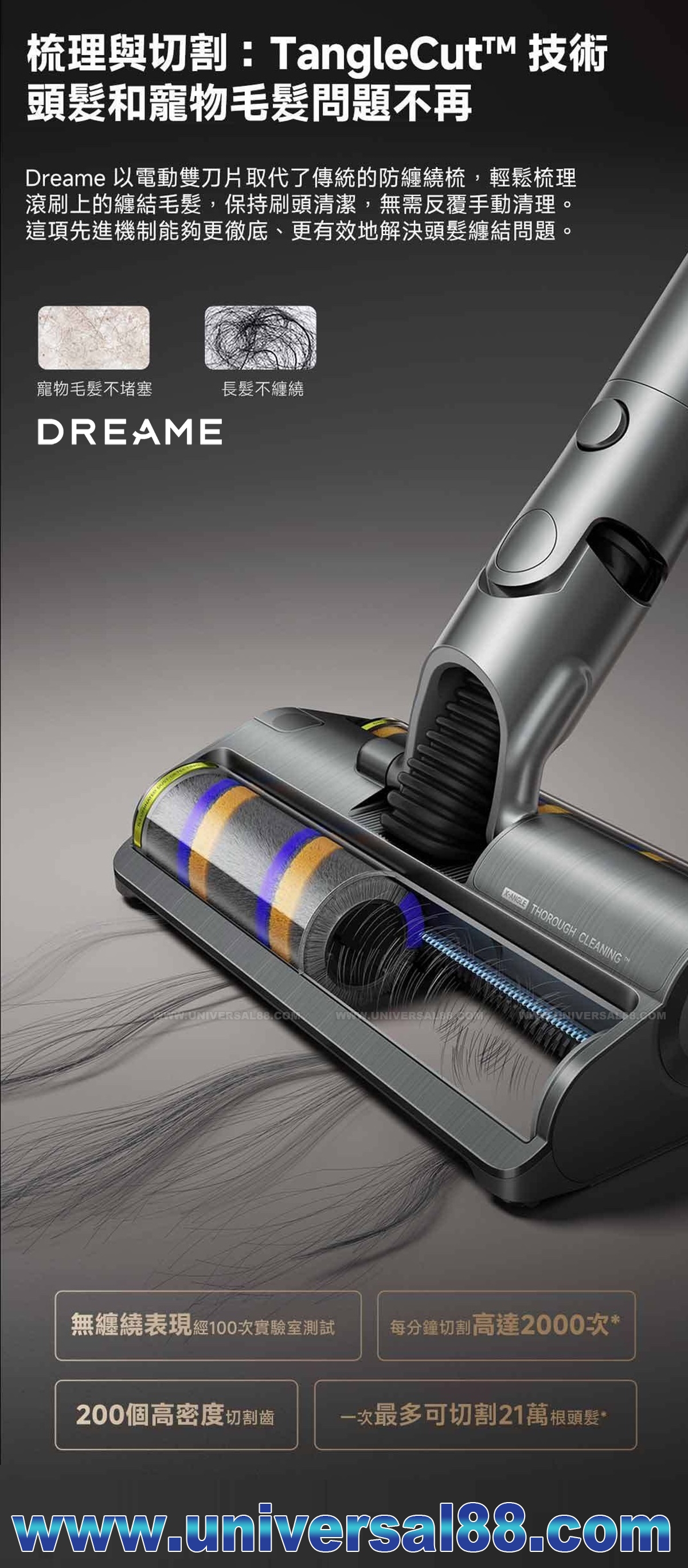 Dreame以電動雙刀片取代了傳統的防纏繞梳,
