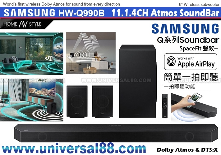 特點: 內置12組揚聲器, 真正11.1.4聲道無線音效, 無線後置/重低音