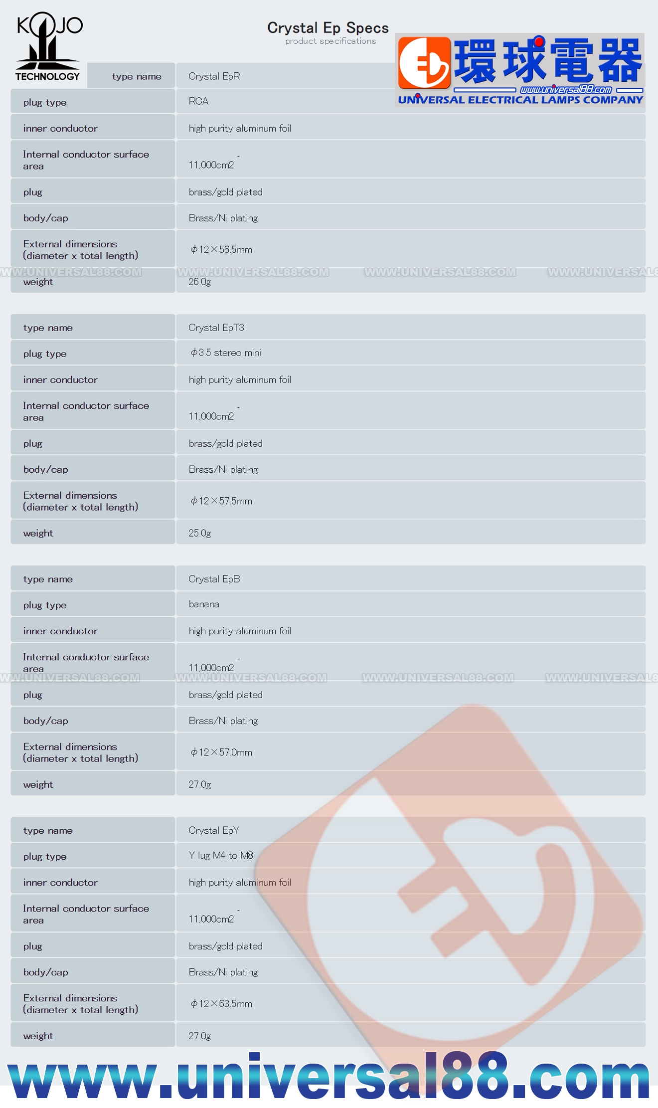 水晶系列的特點Crystal EpR, 最通用的RCA插頭,
