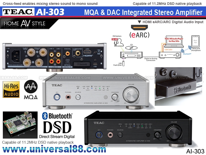 AI-303 支持 MQA 全解碼,通過數字連接從任何數字輸入