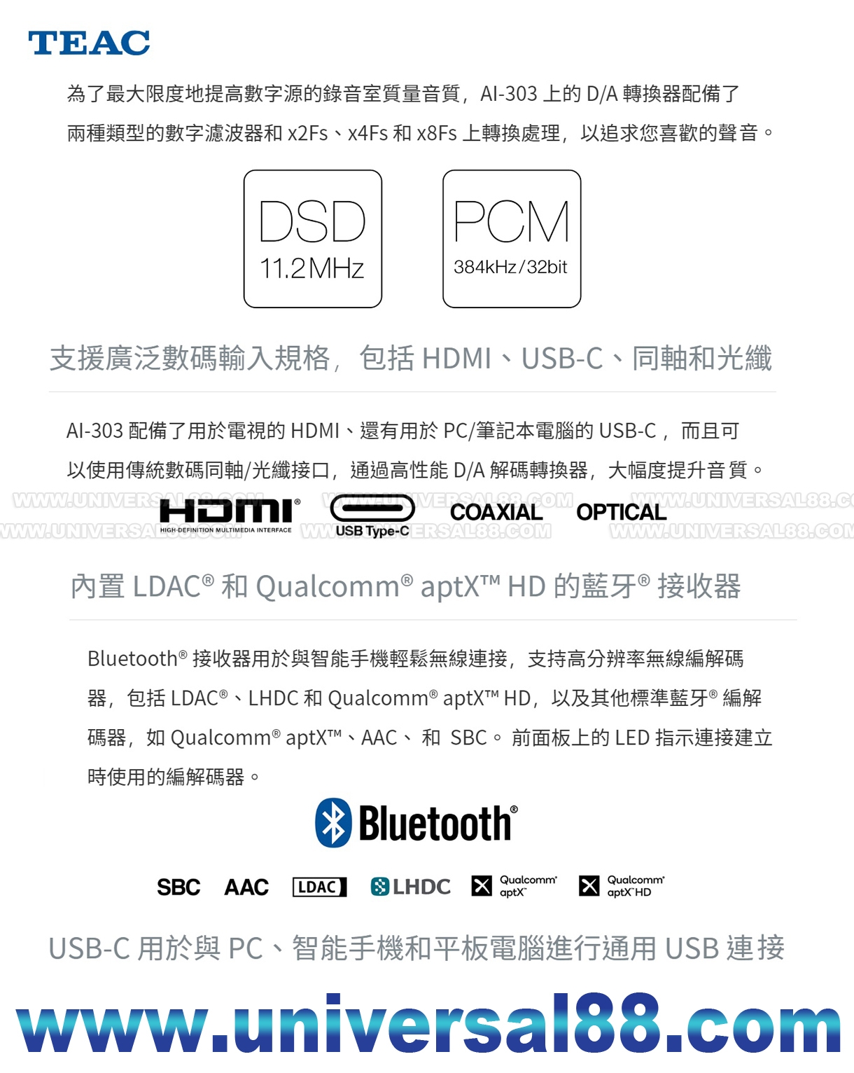 特點: 高解析數位音頻的世界, 包含11.2MHz DSD & 32bit/384kHz