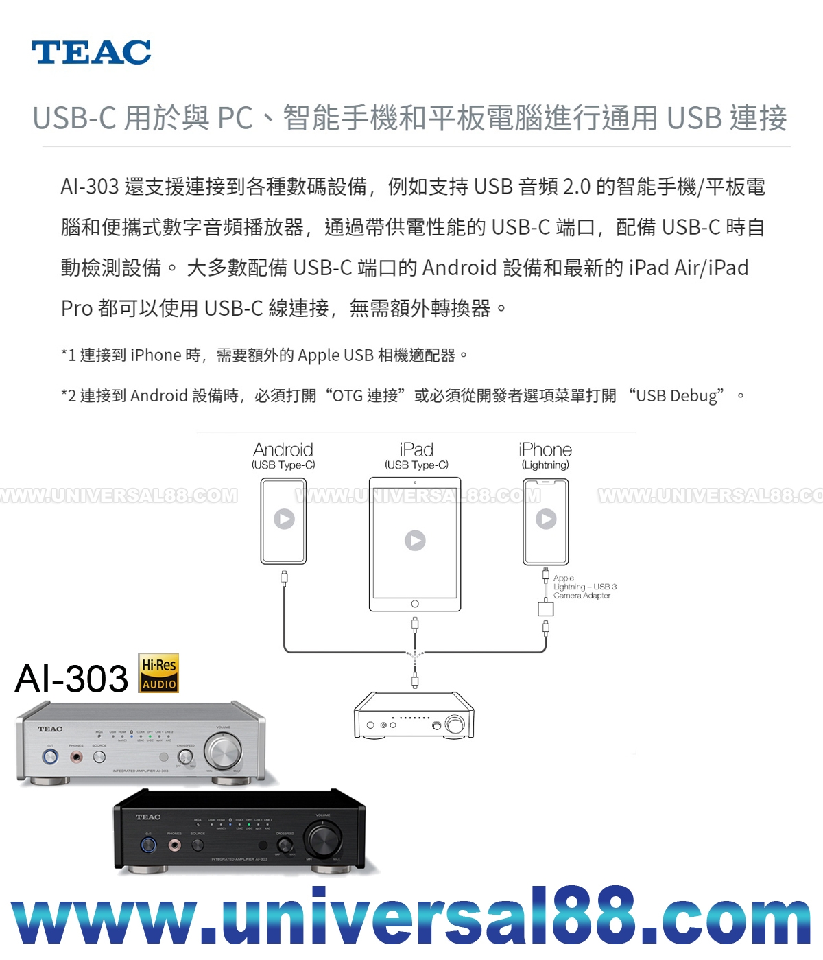 連接AI-303 還支援連接到各種數碼設備, 例如支持 USB