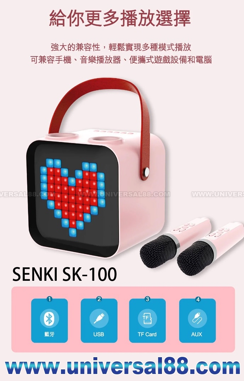 特點: 一鍵原唱消音功能, 雙無線咪Mic配搭, 隨時隨地雙人合唱