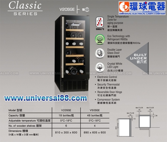 特點: 自動白燈LED, 雙層玻璃設計, 設有LED顯示屏可即時顯示現有櫃內溫度