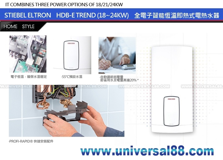 特點: 2i 技術, 全電子恒溫即熱式電熱水器, 35/43/50/55℃內置水選擇