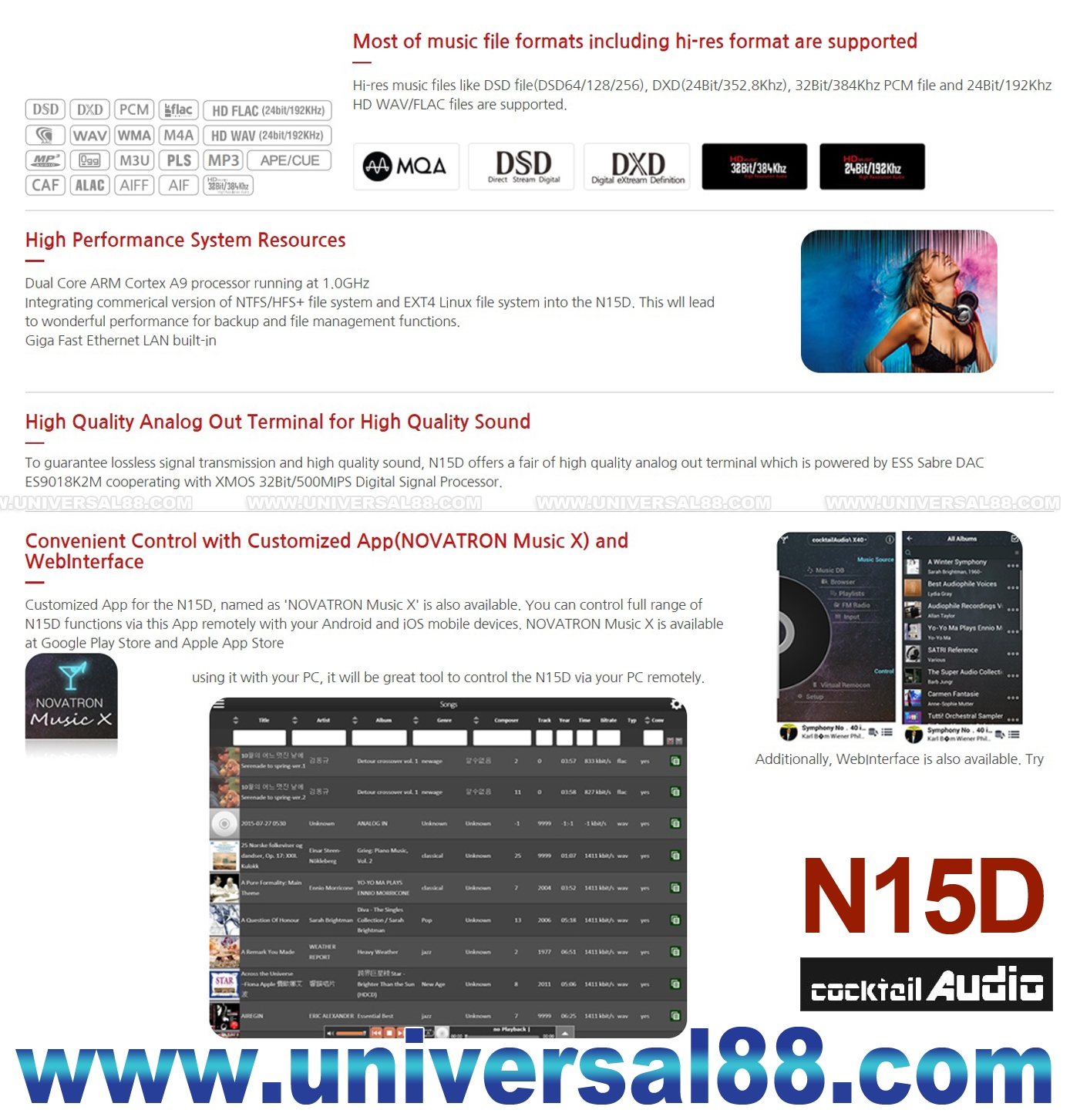 機身以全鋁合金打造, N15D支援多家主流音樂