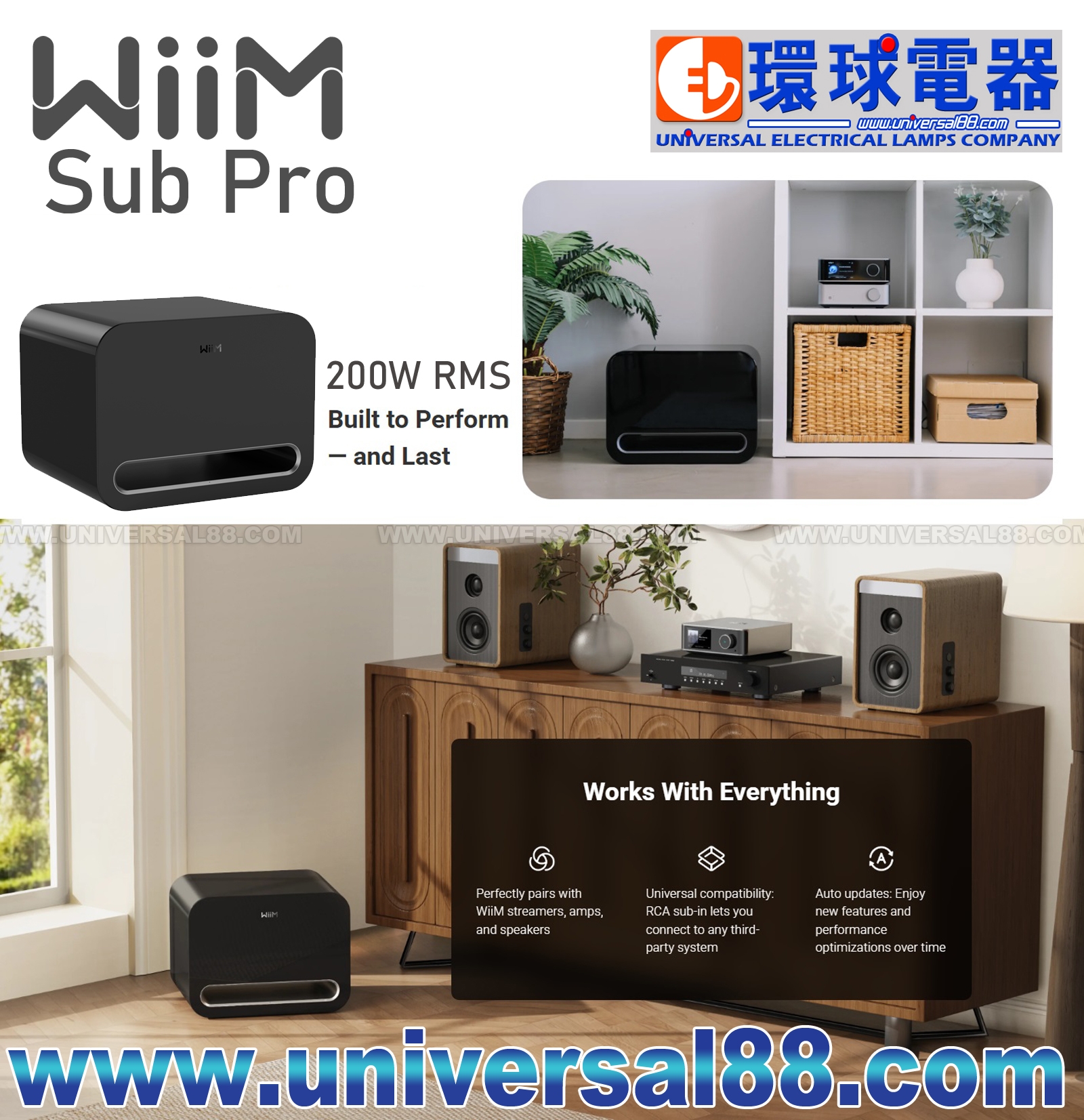 Sub Pro與WiiM串流器、功放與音箱完美配合; 通用兼容,