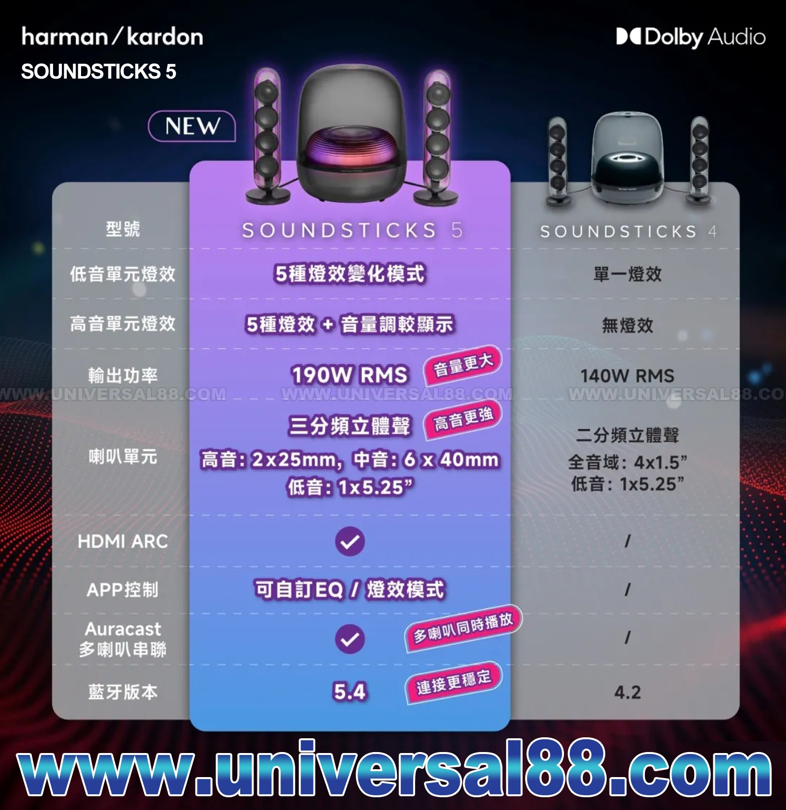 SoundSticks 5 的沉浸式LED動態光效, 重新定義視聽享受!