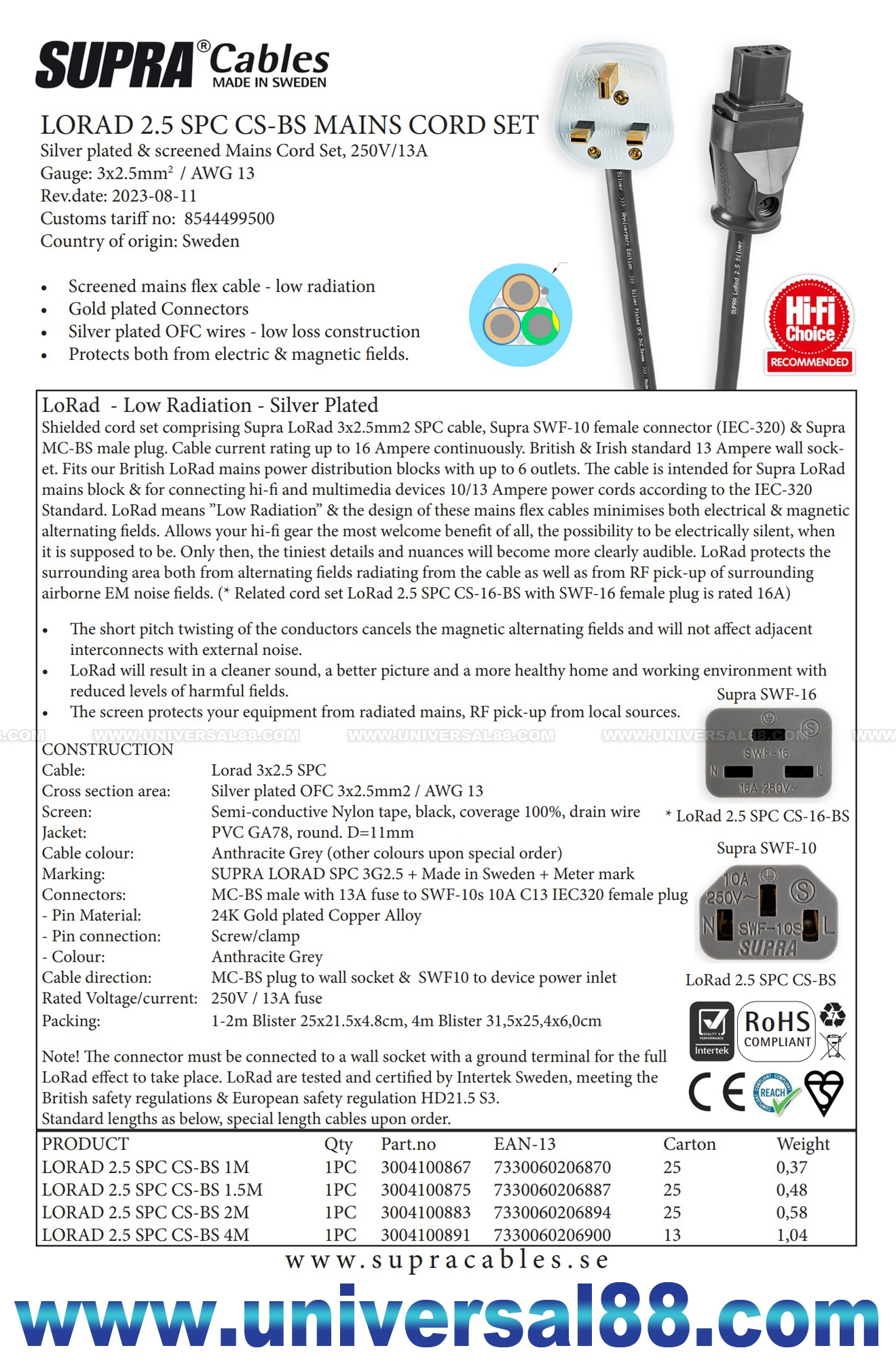 配備 Supra SW-BS 公頭插頭及SWF-10母頭連接器