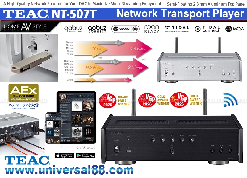 特點: Roon Ready認証, MQA解碼, 支持DSD 512 高分辨率播放
