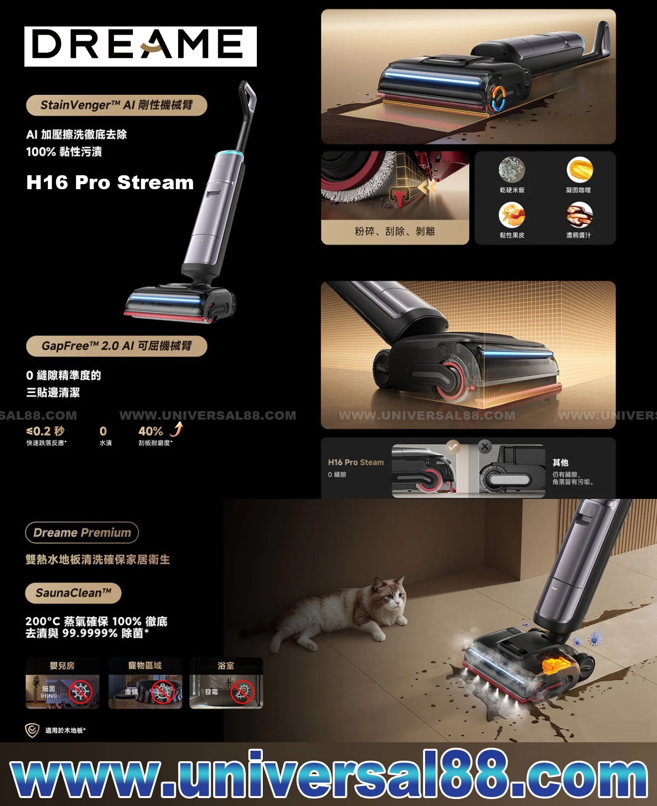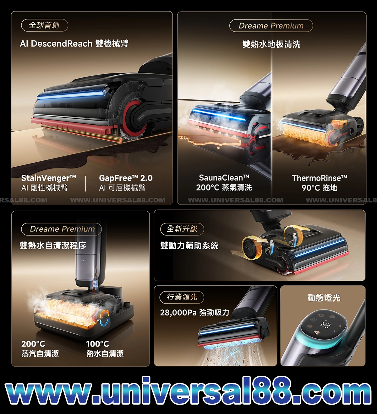 (能產生28,000Pa強力吸水) (雙重防纏毛, App智慧連接) (自立式充電, 使用達72分鐘) (水箱自動產生電解水真正除菌) (ThermoRinse 90°C加熱活水) (200°C蒸氣徹底99.999%除菌) 免息分期: 每月HKD $270 (共24個月) 送DREAME高溫清潔液2支 LASTUPDATE: 10-01-2026
