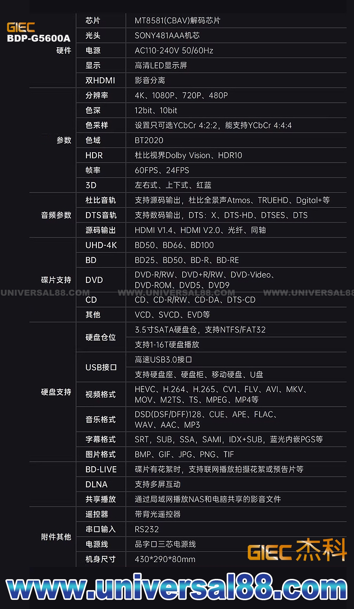 (支援SACD ISO, Dolby Vision)