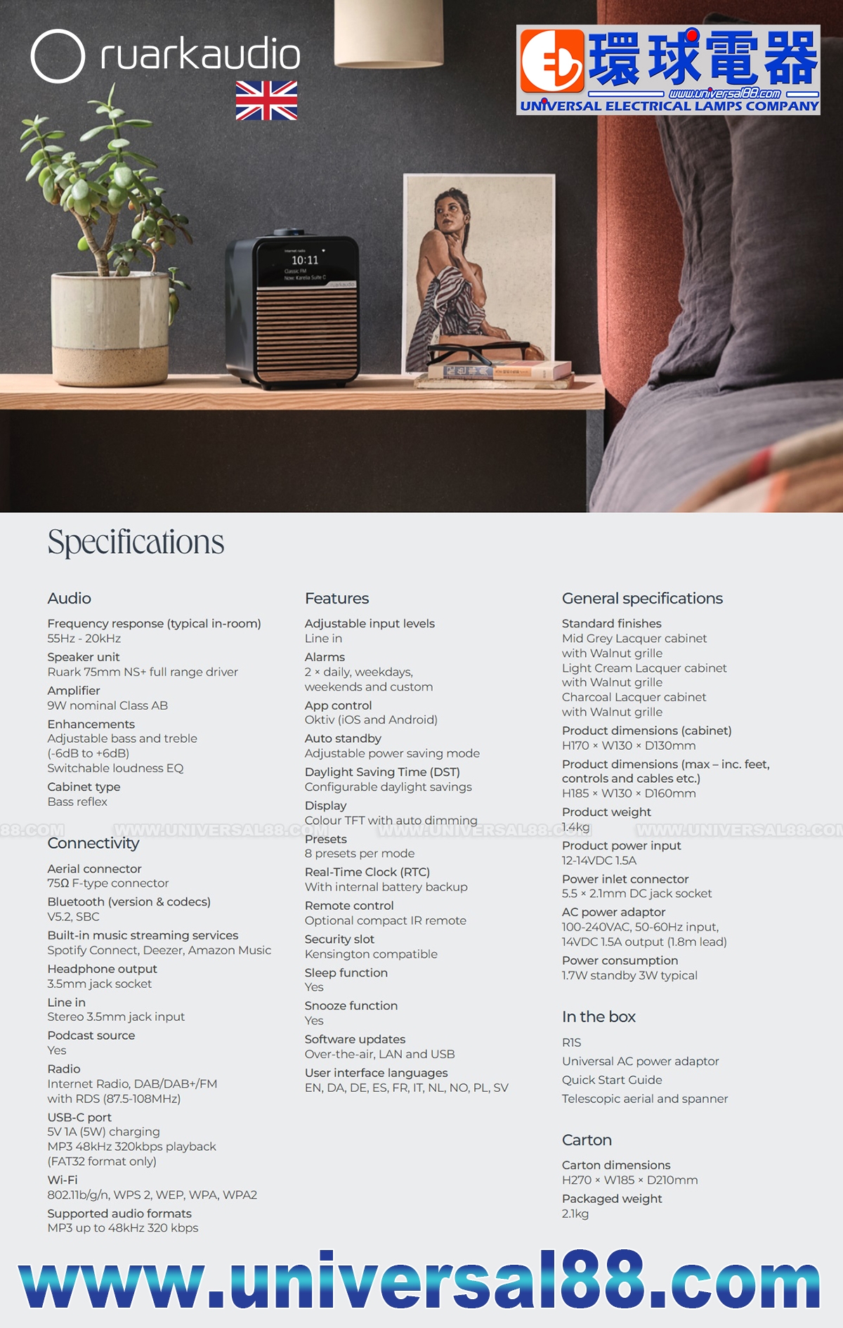 英國RuarkAudio R1D(R1MK4)高級數碼收音機無線喇叭(深木)