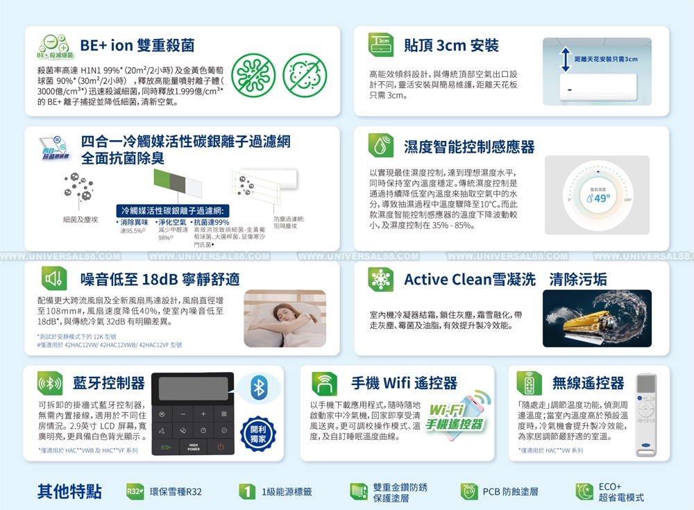 特點: 變頻淨冷, R32環保雪種, 獨立運作nanoe-G空氣淨化系統