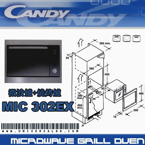 CANDY MIC302EX 嵌入式2合1微波爐+焗爐(Build-in-Type) 金鼎牌2合1MICROWAVE & GRILL OVEN